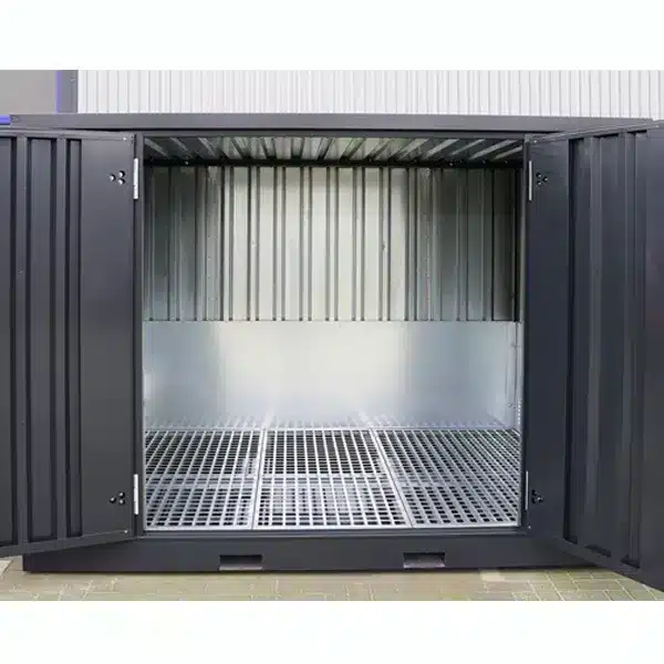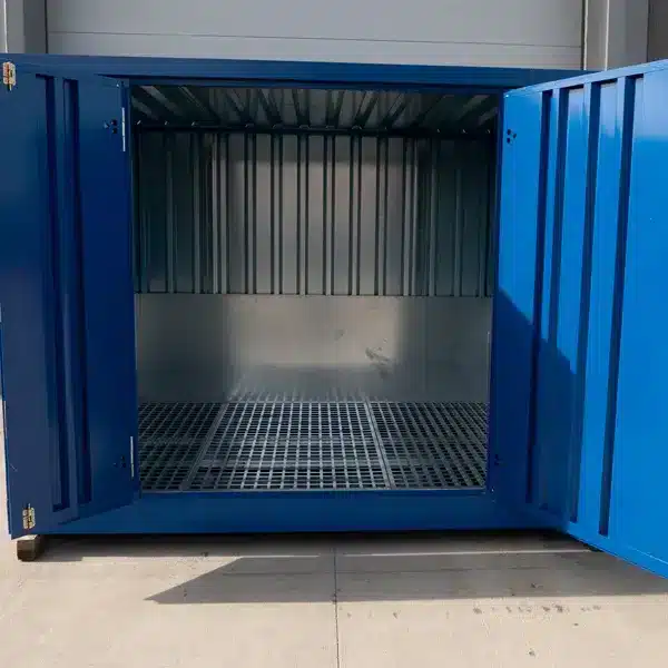 Bieten Sie Ihrem Unternehmen Sicherheit und Langlebigkeit mit diesem Chemikaliencontainer 2 × 2 m – einer robusten, modularen und selbstmontierbaren verzinkten Lösung für die sichere Lagerung gefährlicher chemischer Stoffe.