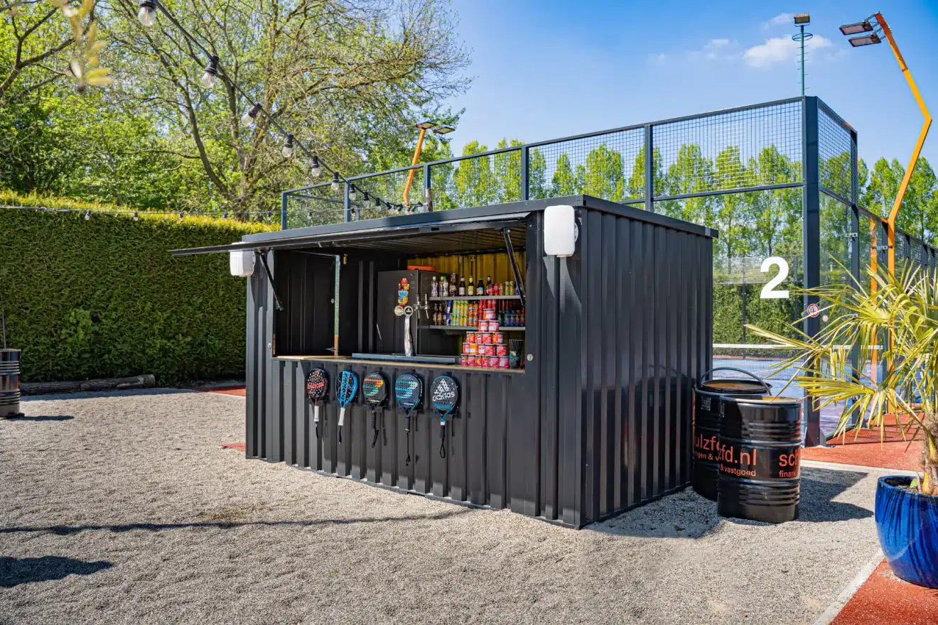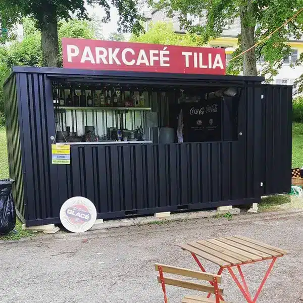 Ideal für Festivalgelände, Events oder Hinterhöfe, bietet dieser mobile Bar-Container einen geschützten Bereich für das Servieren von Getränken und Snacks – vor Sonne und Regen geschützt.