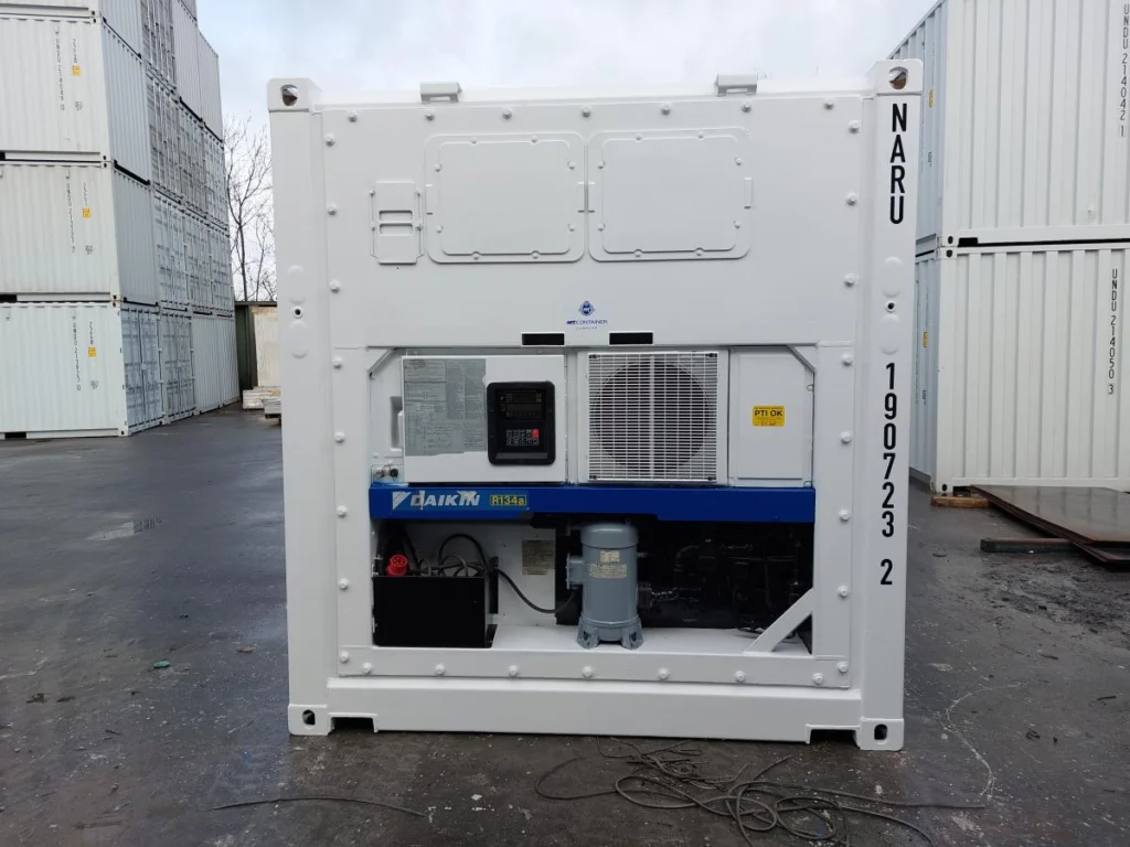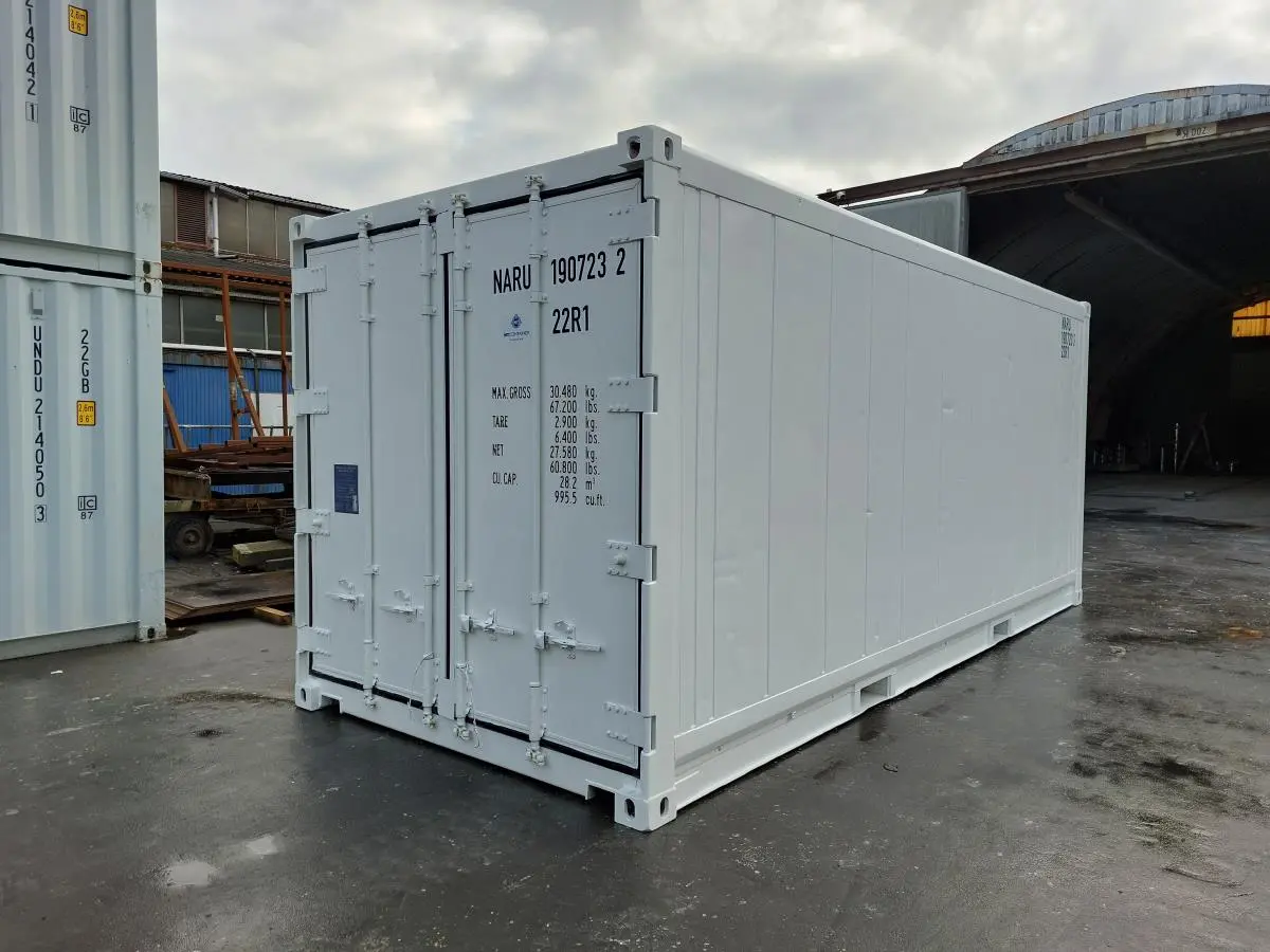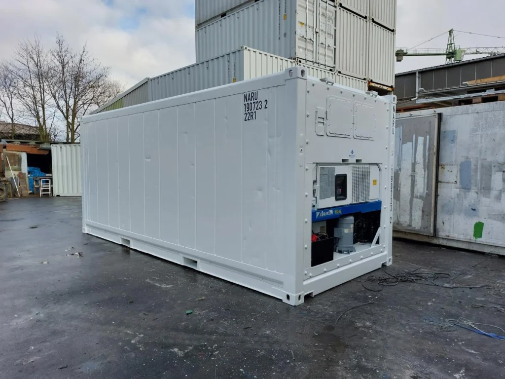Kühlcontainer 20 Fuß NARU 190723-2 – Die ideale Lösung für die sichere Lagerung und den Transport Ihrer temperaturempfindlichen Waren. Dieser kompakte und robuste Kühlcontainer gewährleistet eine optimale Konservierung Ihrer frischen, tiefgekühlten oder pharmazeutischen Produkte.