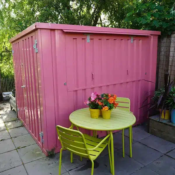 Die Wahl einer modularen Containerbar in RAL 3014 (Altrosa) schafft eine warme, einladende und originelle Atmosphäre.